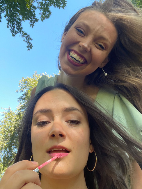 Mariah and I left The Metament at 9:30 AM, dresses, cake, and garbage bags in hand, to drive to the venue. This was where the bridesmaids would be getting ready. After driving safely over and depositing the cake and snagging some bagels, we set to work on our hair. The other bridesmaids, Cade's sister Camryn and Ellie's sister Emma, were there working on their hair and makeup too. Personal attendant Maggie and day of coordinator Naomi popped in and out to make sure everything was going according to plan.